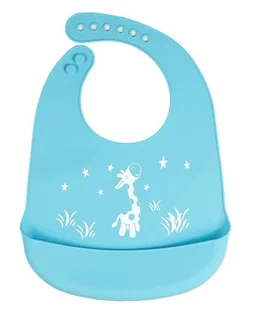 Silikonowy śliniak z kieszonką dla dzieci – niebieski, żyrafa