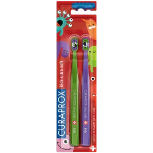 Curaprox Kids Duo Little Bacterias, szczoteczka do zębów dla dzieci 4-12 lat, Ultra Soft, 2 sztuki