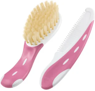 Chcesz zapewnić dziecku to, co najlepsze$45 Szczotka NUK wykonana jest w 100% z naturalnego włosia. Grzebień ma zaokrąglone ząbki. Oba produkty dobrze leżą w dłoni. Zestaw dostępny w trzech atrakcyjnych kolorach.