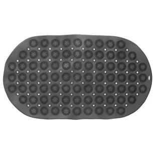 Mata ma owalny kształt o wymiarach 68 x 37 cm. Sprawdzi się pod prysznicem, w brodziku lub wannie. Mocno przylega za pomocą przyssawek.