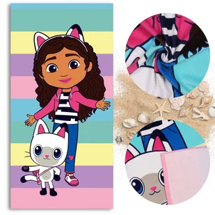 Koci Domek Gabi Kolorowy, SZYBKOSCHNĄCY Ręcznik plażowy, kąpielowy dla dzieci BAWEŁNIANY 70x140 cm OEKO-TEX Duży ręcznik dziecięcy z bohaterami bajki Gabby’s...