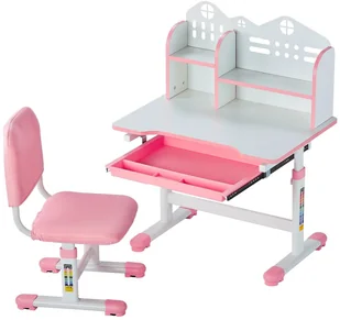 Biurko dla dziecka z krzesłem regulowane z półką szufladą różowe do nauki
