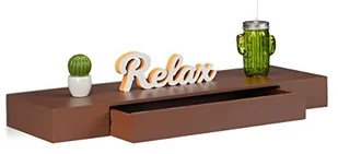 Relaxdays Regał ścienny z szufladą, wiszący, design, 25 cm głębokości, salon, szuflada ścienna, brązowa
