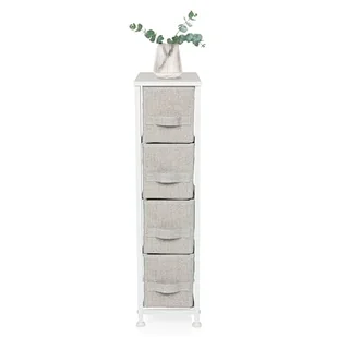 hjh LIVING FOLDRESS S komoda z 4 szufladami materiałowymi, 20 x 48 x 76 cm, organizer do szuflady z regulacją wysokości, metalowy stelaż, szara