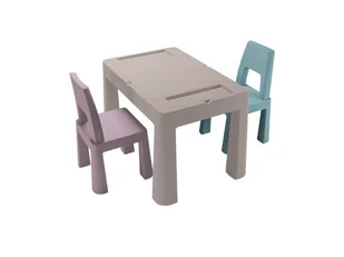 TEGGI TEGA MULTIFUN STOLIK + 2 KRZESEŁKA +BLAT do klocków kolor: BEŻ/WRZOS/TURKUS Zestaw dla dzieci MULTIFUN składa się ze stolika i 2 krzesełek. • Stworzony z myślą o dzieciach, które zaczynają rysować, malować, przeglądać książeczki i budować z klocków. • Zestaw może być używany zarówno zimą w domu jak i latem w ogrodzie. • Pod blatem znajdują się trzy pojemniki o głębokości ok.