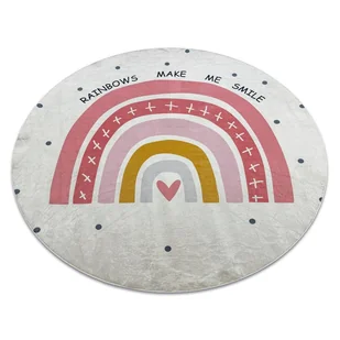 Dywan do prania BAMBINO 47810 koło Tęcza, kropki dla dzieci, antypoślizgowy - biały / różowy koło 120 cm