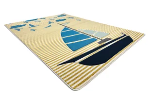 motyw łódki połączony z kolorem złotym zachwyci każde dziecko oraz rozjaśni i ożywi wnętrzewyprodukowany z polipropylenu heat set frise 2PLY, dzięki czemu jest nie tylko bardzo trwały, ale również bezpieczny dla alergikówwykorzystanie podwójnie skręcanej przędzy typy fryz sprawia, że dywan nie odgniata się nawet pod ciężkimi meblami- zachowuje piękny wygląd na latadywan jest miękki i bardzo przyjemny w dotyku a dzięki zastosowaniu wycinanych wzorów dających efekt 3D, pobudzi dziecięcą sensorykę i zachęci do zabawymożna go dostosować do wnętrza każdej wielkości- jest w szerokiej gamie rozmiarów: od 120x170 cm aż do 200x290 cmkolekcja dostępna zarówno w kształcie prostokąta jak i koła. Model PETIT SAIL z pewnością zachwyci każdego małego chłopca marzącego o morskich podróżach. Motyw łódki na złoto-kremowym tle nada wnętrzu wręcz bajkowej scenerii. Zastosowanie modnych, pastelowych kolorów wprowadzi nutę nowoczesności i elegancji nie odbierając przy tym elementu dziecięcej beztroski.