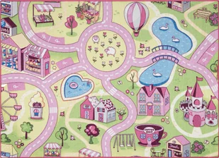 DYWAN REBEL ROADS Sweet town 26 Słodycze, dla dzieci antypoślizgowy - różowy / zielony 95x200 cm