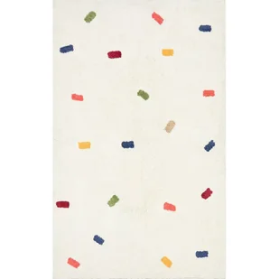 Dywan Epifania od Kave Home został zaprojektowany z myślą o tworzeniu przytulnych przestrzeni i dodawaniu osobowości wnętrzom. Wykonany jest w 100% z bawełny i ma krótkie włosie, które jest przyjemnie miękkie w dotyku. Bawełniany materiał sprawia, że dywan jest trwały i łatwy w utrzymaniu. Krótkie włosie zapewnia również łatwe czyszczenie i sprawia, że wzór jest zawsze dobrze widoczny i wyraźny. Jego powierzchnia jest ozdobiona uroczymi, nieregularnie rozmieszczonymi prostokątnymi kształtami.