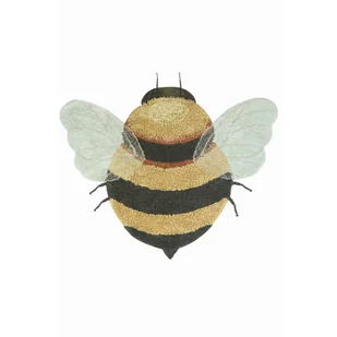 Dywan dziecięcy Lorena Canals wiernie przypomina pszczołę. Korpus pszczoły jest ozdobiony paskami w miodowych i ciemnoszarych odcieniach, a starannie wykonane ręcznie skrzydła mają delikatny niebieski kolor. Jedna część dywanu jest wyjątkowo puszysta z dłuższym włosiem, nadając mu wyjątkową teksturę. Dywan jest starannie wykonany ręcznie przez rzemieślników we własnej fabryce marki w Indiach, przy użyciu tradycyjnych technik. To sprawia, że jest to wyjątkowe dzieło sztuki z subtelnymi różnicami, które podkreślają piękno niedoskonałości.