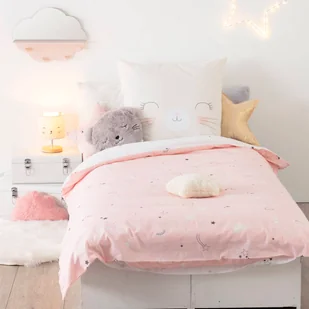 Pościel marki Atmosphera cechuję się hipoalergicznymi właściwościami, co zapewni maluchowi komfortowy sen i odpowiedni wypoczynek. Wykona z wysokiej jakości bawełny, nie powoduje podrażnień i jest odpowiednia dla alergików. Pościel jest przystosowana by bez obaw prać ją w pralce w temperaturze nawet 60oC. Oryginalny design sprawi, że ucieszy oko każdego malucha. Poszewka na kołdrę została wykonana w rozmiarze 140 x 200 cm i stanowi komplet wraz ze śliczną poszewką 65 x 65 cm w odcieniu delikatnego różu.