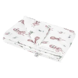 Ma bardzo dobrą absorpcje wody, dużo lepszą niż bawełna. Bardzo szybko schnie! Chroni przed promieniami UV oraz posiada właściwości termoregulujące - utrzymuje temperaturę o 2 stopnie niższą niż temperatura otoczenia. Środek kołderki wypełniony jest antyalergiczną włókniną wysokopuszystą silikonową. Zapewnia ona dziecku ciepło oraz wygodę podczas użytkowania. Kołderka idealnie sprawdza się do łóżeczka, na popołudniową drzemkę w przedszkolu, a także jako ulubiona kołderka na wszelkie wyjazdy lub jako mięciutka mata dla dziecka, z uwagi na swoją wielkość również jako narzutka na łóżko.