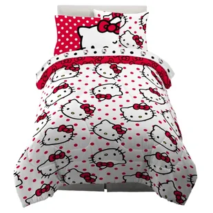 Franco Zestaw kołder i prześcieradeł, mikrofibra, czerwony - Hello Kitty, 5-częściowy podwójny rozmiar
