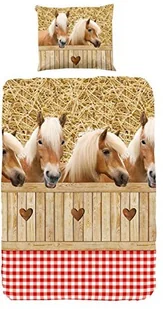 Herding 442428050 komplet pościeli, motyw: konie, poszewka na poduszkę 80 x 80 cm i poszwa na kołdrę 135 x 200 cm, 100 % bawełna wzmocniona renforce 4424028050