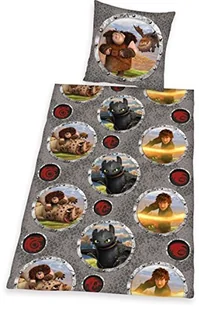Herding DREAMWORKS DRAGONS zestaw pościeli, dwustronna poszewka na poduszkę, poszewka na kołdrę 135 x 200 cm, poszewka na poduszkę 80 x 80 cm, bawełna/Renforcé