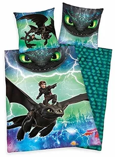 Herding DREAMWORKS DRAGONS Komplet pościeli, dwustronny motyw, poszwa na kołdrę 135 x 200 cm, poszewka na poduszkę 80 x 80 cm, bawełna renforcé