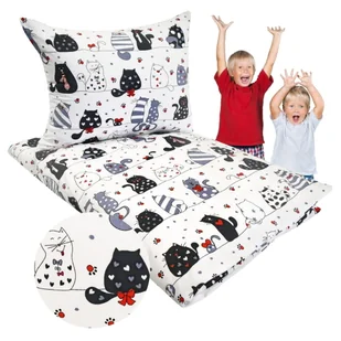 Komplet Pościeli Dziecięcej 90x120 + 40x60 Szalone Koty Czerwone Na Białym 100% Bawełna Polski Producent