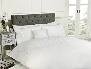 Limoge Poszewka na kołdrę-zestaw, składający się z 2 poszewki na poduszki, motyw: Róża, z zamkiem z falbankami-szczegółów, biały 12396543