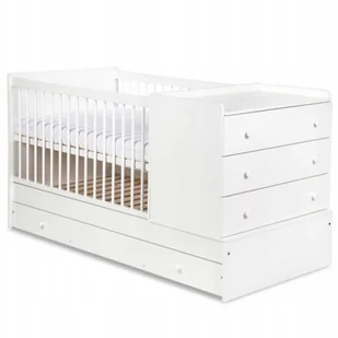Łóżko Łóżeczko Dla Dziecka Z Komoda Szuflada Na Pościel Szczeble 3W1 Białe