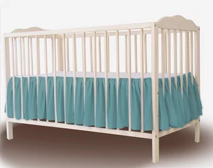 Falbana zakładana pod materacykiem, rozm. 140x70 cm, z falbaną gęsto marszczoną na wszystkie boki łóżeczka. Środek stanowi biała tkanina bawełniana, która może służyć jako zwykłe prześcieradło (założone na materac). Falbana pięknie uzupełnia kompletnie pościelone łóżeczko. Falbana nie tylko maskuje to co znajduje się pod łóżeczkiem, ale również pięknie dekoruje łóżeczko maluszka.
