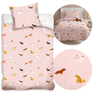 PIESKI Różowa, DWUSTRONNA, bawełniana pościel dziecięca na zamek, 100% BAWEŁNA 160x200cm+70x80cm OEKO-TEX Ta urocza pościel z motywem różnokolorowych piesków...