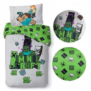Pościel bawełniana 140x200 Bawełna 100% młodzieżowa Minecraft kolor szary