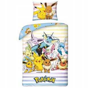 Pościel bawełniana 160x200 Pokemony żółta niebieska poszewka