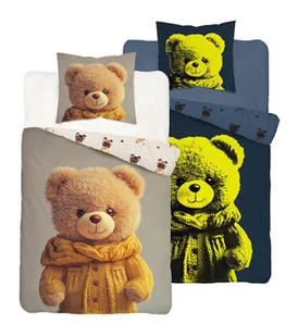 Pościel dziecięca świecąca w ciemności 140x200 FluoDream 5734A to urocza pościel bawełniana dla dzieci z dużym, miękkim misiem w żółtym sweterku, idealna do ...