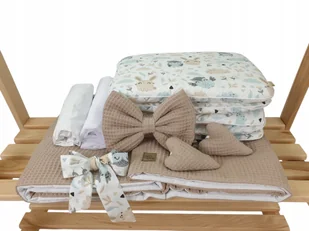 Pościel wafelkowa 5-el. w kolorze beżowym – królik i sowa. Wiklinopol