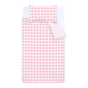 Bianca Dwustronna poszewka na kołdrę z bawełny w kratkę i paski, zestaw poszewek na poduszki, różowy