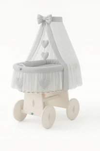 Wiklinowy kosz Mojżesza z baldachimem Amelia biały szara pościel
