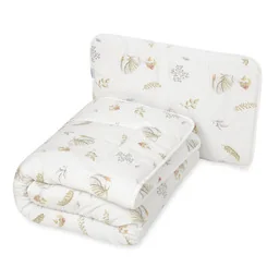 " Szczegóły produktu: Rodzaj: komplet dziecięcy do łóżeczka W skład kompletu wchodzą: kołdra o wymiarach 135x100 cm poduszka o wymiarach 40x60 cm Kolor: biały z nadrukiem liści Obszycie: 100% naturalna bawełna przewiewna, miękka i przyjazna dla skóry Wypełnienie: