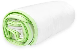 Antyalergiczna kołdra wegańska letnia, ultralekka z kolekcji Bamboo o rozmiarze 180x200 cm. Poszycie kołdry stanowi naturalna tkanina składająca się z bambusa (52%) oraz bawełny (48%). Wypełnieniem jest mieszanka antyalergicznych włókien poliestrowych silkonowanych, karbikowanych, typu hollow (HCS) zapewniających odpowiednią cyrkulację powietrza oraz włókien celulozowych pozyskanych ze zmiażdżonych łodyg bambusa, pochodzących z wolnych od środków bakteriobójczych oraz nawozów sztucznych plantacji. Kołdra została wykończona po obwodzie dekoracyjną jasnozieloną bizą, która podkreśla jej naturalny i ekologiczny charakter. Włókno bambusowe posiada naturalne właściwości antybakteryjne - eliminuje około 70% bakterii ze swojej powierzchni, dzięki czemu zapobiega powstawaniu nieprzyjemnego zapachu.