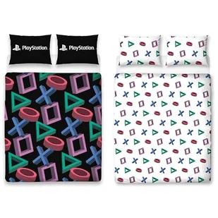 Oficjalny zestaw podwójnych poszewek na kołdrę PlayStation, abstrakcyjny design, dwustronna, dwustronna, w tym pasujące poszewki na poduszki, czarny zestaw podwójnych łóżek do gier