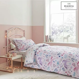 Bianca Woodland jednorożec i gwiazdy bawełna nadruk pojedyncze prześcieradło z gumką różowe