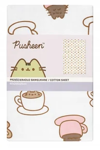 Pusheen – Prześcieradło bawełniane białe ze wzorem „1” 90x200x25 cm