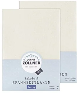 Julius Zöllner Prześcieradło z gumką z dżerseju do łóżeczka dziecięcego i niemowlęcego, 100% bawełna, certyfikat Öko-Tex Standard 100, wymiary: 60 x 120 cm / 70 x 140 cm, 2 sztuki, ecru