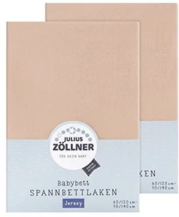 Julius Zöllner Prześcieradło z gumką z dżerseju do łóżeczka dziecięcego i niemowlęcego, 100% bawełna, certyfikat Öko-Tex Standard 100, wymiary: 60 x 120 cm / 70 x 140 cm, 2 sztuki, piaskowe