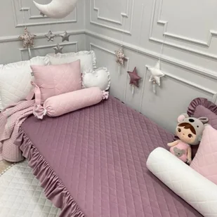 AKSAMITNA PIKOWANA NARZUTA Z FALBANKĄ 110x180cm VELVET JAGODOWA