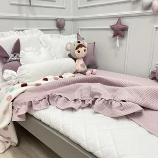 LEKKA NARZUTA 90x180cm WAFELKOWA ZŁAMANY RÓŻ Z FALBANKĄ