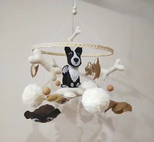 Karuzela handmade z psiakami , dekoracja do pokoju dziecięcego