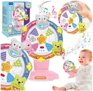 Interaktywne elementy: Poruszajcy si diabelski myn z kolorowymi figurkami zwierzt i migajcymi wiatami. Efekty wietlne i dwikowe: Lampki migaj w rytm muzyki i gosu, przycigajc uwag Twojego dziecka. Stabilna przyssawka: