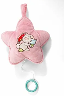 od 0 miesięcy Pozytywka gwiazdka z królikiem Tilli Ta pozytywka wykonana z wysokiej jakości pluszu NICI delikatnie ukołysze dzieci do krainy snów. Gwiazdka w różowym kolorze ma z przodu króliczka Tilli. Tilli ułożył się wygodnie na poduszce na drzemkę. Po pociągnięciu za sznurek, na końcu którego znajduje się praktyczny gryzak, pozytywka odtwarza kołysankę Brahma (Guten Abend, gut Nacht).