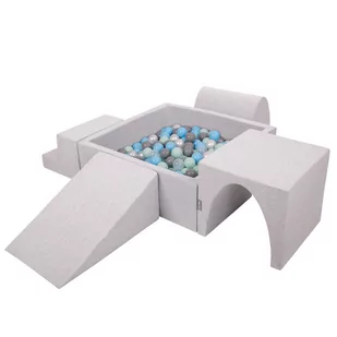 KiddyMoon Piankowy plac zabaw PPZP-KW30D-125 z piłeczkami jasnoszary: perła-szary-transparent-babyblue-mięta basen 300/klin L/górka/tunel/schodek Za..