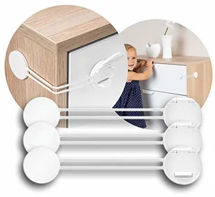 2017-09. Wykonane z wysokiej jakości tworzywa sztucznego. Niezwykle prosty, samoprzylepny montaż. Obie części zamknięcia połączone elastycznymi paskami. Produkt zawiera: 3sztuki. Wyprodukowane przez: