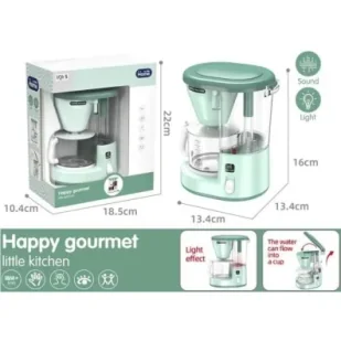 Happy Gourmet Interaktywny Mini Ekspres do Kawy dla Małych Baristów Zabawkowy ekspres do kawy Happy Gourmet to wspaniały dodatek do każdej dziecięcej kuchni. Ten realistycznie wyglądający mini ekspres nie tylko zachwyca swoim uroczym designem w pastelowym kolorze, ale także oferuje interaktywne funkcje, które uatrakcyjnią zabawę. Twoje dziecko może poczuć się jak prawdziwy barista, przygotowując pyszną (na niby!) kawę. Ekspres został wyposażony w efekty dźwiękowe, które imitują pracę prawdziwego urządzenia, oraz w światełko, które dodaje realizmu. Co więcej, ten sprytny ekspres umożliwia przepływ wody do dołączonej filiżanki, co sprawia, że zabawa staje się jeszcze bardziej wciągająca.