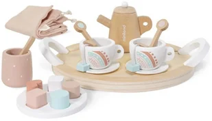 Drewniany zestaw do herbaty z ciasteczkami sprawi, że zabawa z lalkami Miniland będzie jeszcze bardziej wciągająca. To świetny sposób na rozwijanie umiejętności społecznych już od najmłodszych lat. Zestaw został wykonany z drewna, a jego elementy zostały pomalowane bezpieczną farbą w pastelowych kolorach. W skład zestawu wchodzi: 1 torba do przechowywania i noszenia 1 taca 1 dzbanek do herbaty 1 cukiernica 1 łyżeczka cukru 2 talerze 5 ciastek 1 talerz do ciast 2 torebki herbaty 2 łyżki i 2 filiżanki.