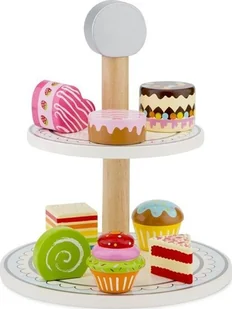 Drewniany stojak na ciasto. W zestawie znajduje się 8 różnych ciast, w tym kropka czerwonego aksamitnego ciasta, muffin i tęczowego ciasta. Fantastyczny dodatek do każdej drewnianej kuchni do zabawy. Drewniane formy można łatwo chwycić i są bardzo przyjazne dla dzieci. Ponadto zabawa z tym zestawem stymuluje rozwój umiejętności motorycznych.