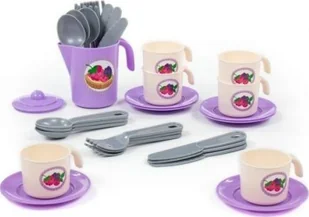 Plastikowy zastaw naczyń na 6 osób do zabawy Ania od firmy Polesie. Zestaw ma prezentacyjny wygląd, dzięki jaskrawej kolorystyce i udanemu designu. Zabawa naczyniami to przyjemność dla każdej dziewczynki. Udawana zabawa w dom lub przyjęcie herbaciane ciekawszą z zestawem Ania. Dana zabawa rozwija wyobraźnię oraz umiejętności prowadzenia spraw domowych. Zestaw jest zapakowany w siatkę.