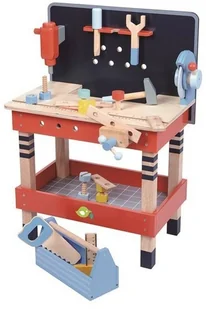 Drewniany warsztat, stolik, Tender Leaf ToysDrewniany warsztat z niezbędnymi akcesoriami. Idealna zabawka dla dzieci lubiących prace manualne!Ten warsztat jest idealny dla początkującego majsterkowicza! Znajdziesz tu wszystko czego potrzebujesz - młotek, śrubokręt, piłę, klucz oraz wiertarkę! W zestawie również poręczna skrzyneczka, do której zapakujesz wszystkie potrzebne narzędzia, gdy trzeba naprawić coś w terenie! Wspaniała zabawa która rozwinie kreatywność malucha!W Tender Leaf Toys przykładamy dużą wagę do szczegółów, dlatego wszystkie narzędzia zostały wykonane tak, aby jak najbardziej przypominały prawdziwe!~~~ Nasze zabawki produkowane są z drzewa kauczukowego, pochodzącego z kraju położonego na 13 tysiącach rajskich wysp - Indonezji. Do ich pomalowania użyliśmy bezpiecznych i delikatnych farb, dzięki czemu drewno zachowało swój naturalny wygląd i widoczną strukturę. Drewno kauczukowe cechuje się wyjątkową wytrzymałością, co jest niewątpliwym atutem zabawek Tender Leaf Toys. W trosce o naturę, w miejsce każdego drzewa wykorzystanego do produkcji zabawek Tender Leaf Toys, sadzimy nowe drzewo.